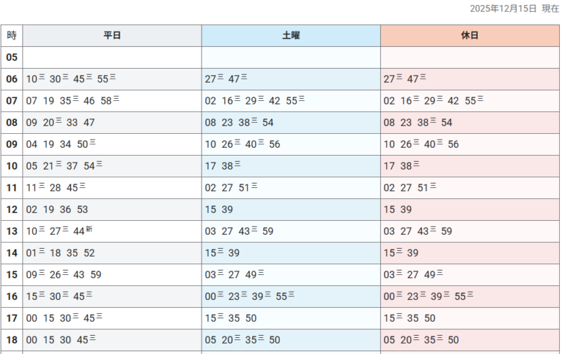 - 運行間隔: 10分に1本以上(待ち時間がほぼない!)