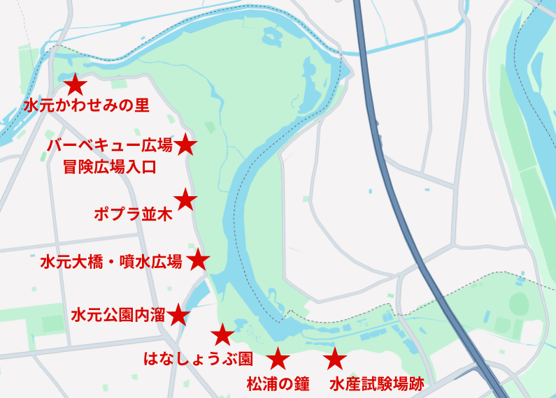 「水元公園」バス停以外は公園から遠いため、他の目的地には不向きです。
