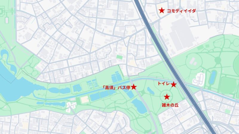 バス停から近い穴場「複合遊具広場」周辺の遊具一覧